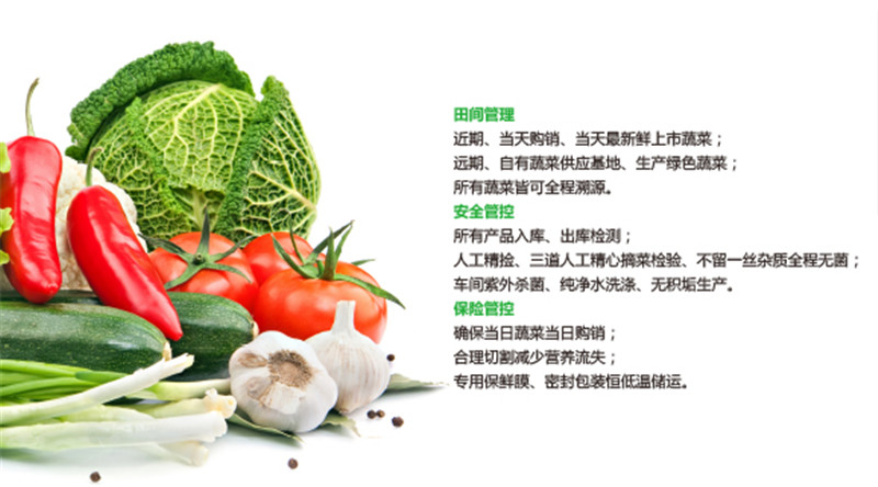 昆山菜籃子農副產品有限公司擁十多年的農副產品配送經驗,各個環節始終處于嚴格且專業的檢驗、檢測、監控系統內,產品加工、貯藏、配送順始終處于所必需的低溫環境下,以保證食品質量安全,減少損耗,防止污染的特殊ACE供應鏈系統。以保證產品“安全、新鮮、營養、健康”。